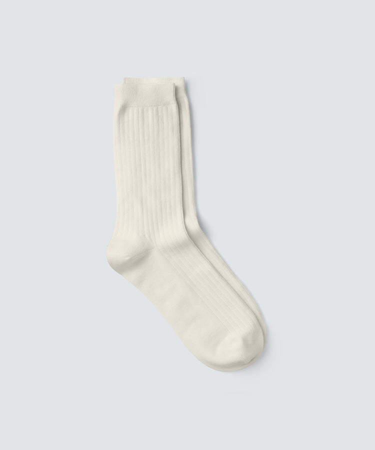 These rib socks (bought the white and tan socks) look and feel great. Light weight (no cushion) they are perfect for casual or dress. Fold up to nothing for travel. Really like the tan color, would match the travel slacks well also.