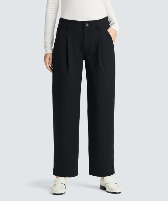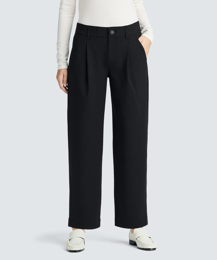 - Soft front pleats add an elevated feel to your look.